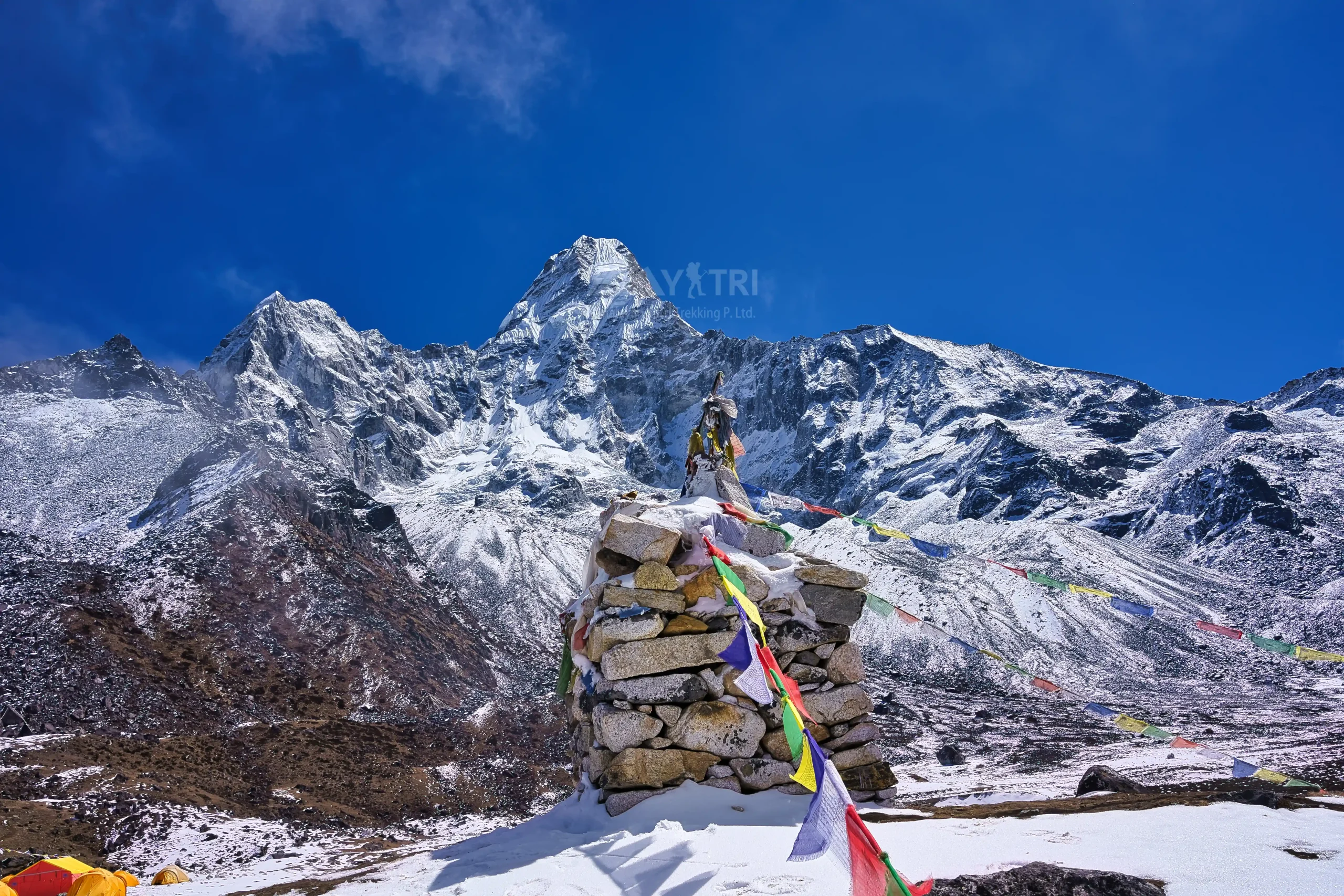 Highlights of the day: Morning hike to the summit of Kala Patthar for the sunrise, you’ll get the most spectacular 360’ closer view of Mt. Everest and other surrounding peaks, as it is not even visible from the base camp itself.