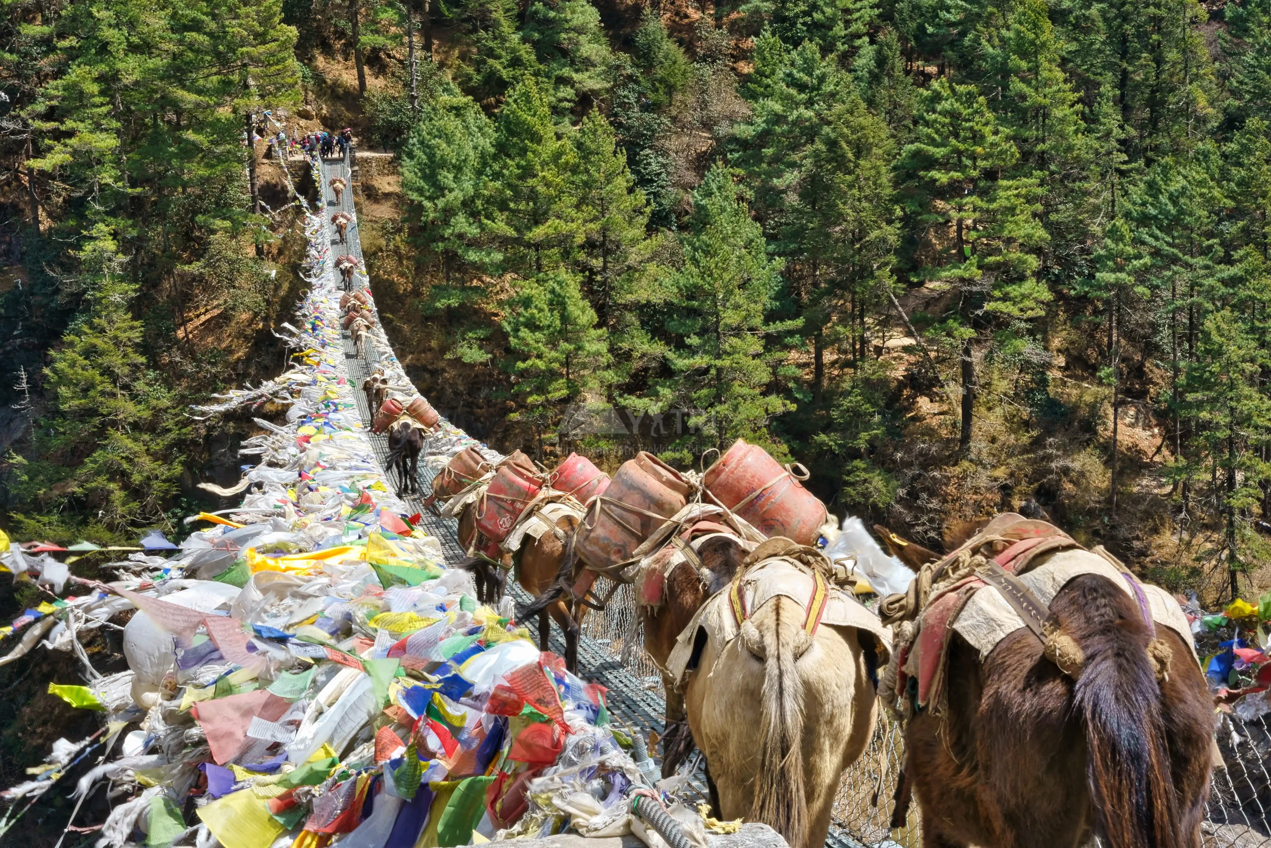 Highlights of the day: The trail ascent through dense forests of pine, rhododendron and leads you to the entrance of Sagarmatha National Park – a UNESCO world heritage site. You’ll cross the iconic landmark Hillery bridge in this route which serves as a vital connection for the local communities and also for the trekkers.